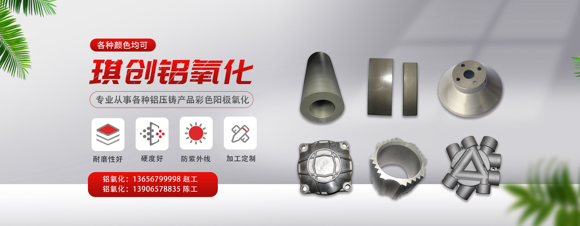 本廠(chǎng)加工的產(chǎn)品耐磨性好,硬度好,防紫外線(xiàn)級(jí)別高 本廠(chǎng)在壓鑄鋁,低壓澆鑄鋁,重力澆鑄鋁鍛打鋁等硬質(zhì)氧化,普通陽(yáng)極氧化工藝技術(shù),品質(zhì)保證?